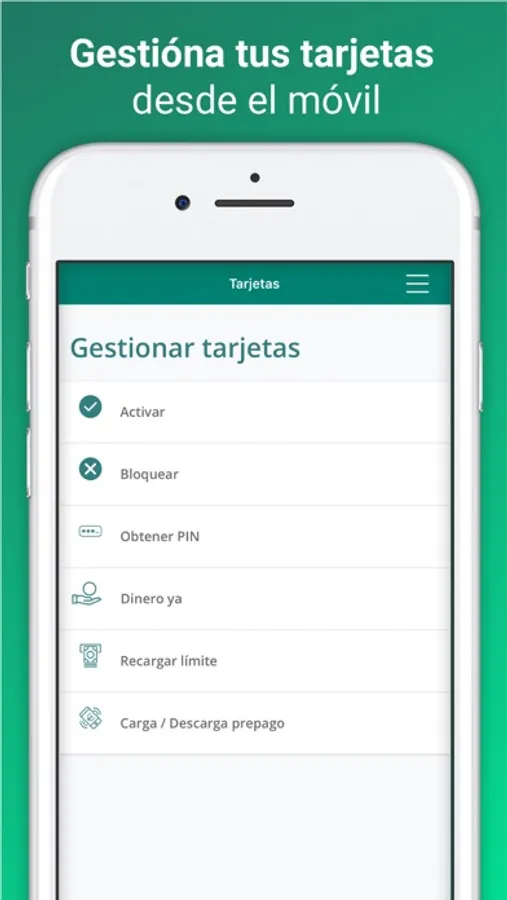 Controla el uso de tus tarjetas, aplaza una compra, recuerda tu PIN o bloquea la tarjeta en caso de robo o pérdida.