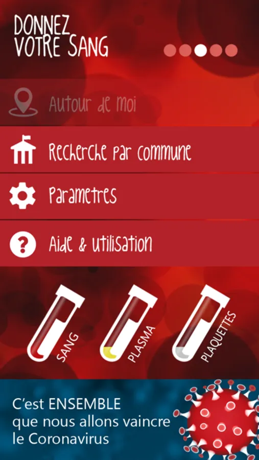 "DONNEZ VOTRE SANG" est une application qui permet à un utilisateur, via la géolocalisation de son appareil, de lister les lieux de collectes de sang autour de lui, d'en préciser la localisation ainsi que les dates et les horaires.