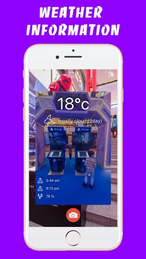 + Chèn thông tin thời tiết, địa điểm,... giúp bạn lưu trữ lại những bức ảnh thú vị trong các chuyến vui chơi