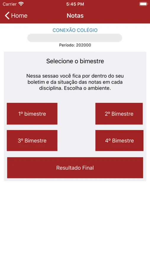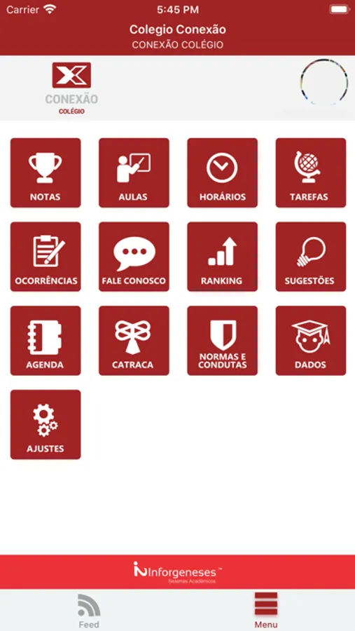 Com o aplicativo do Conexão Colégio pais e alunos podem acompanhar o desempenho escolar. Funcionalidades disponíveis: