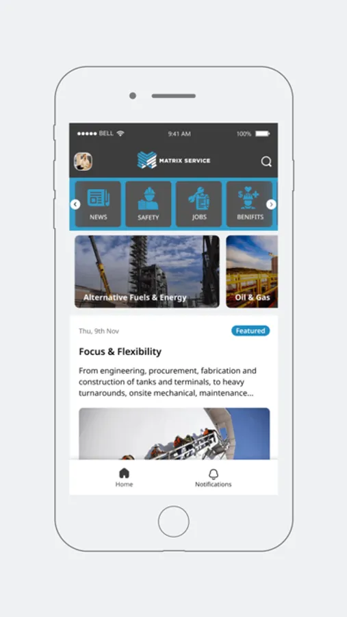 Download our app to stay up to date with craft, field and administrative job opportunities, project awards and updates, and safety and wellness tips.