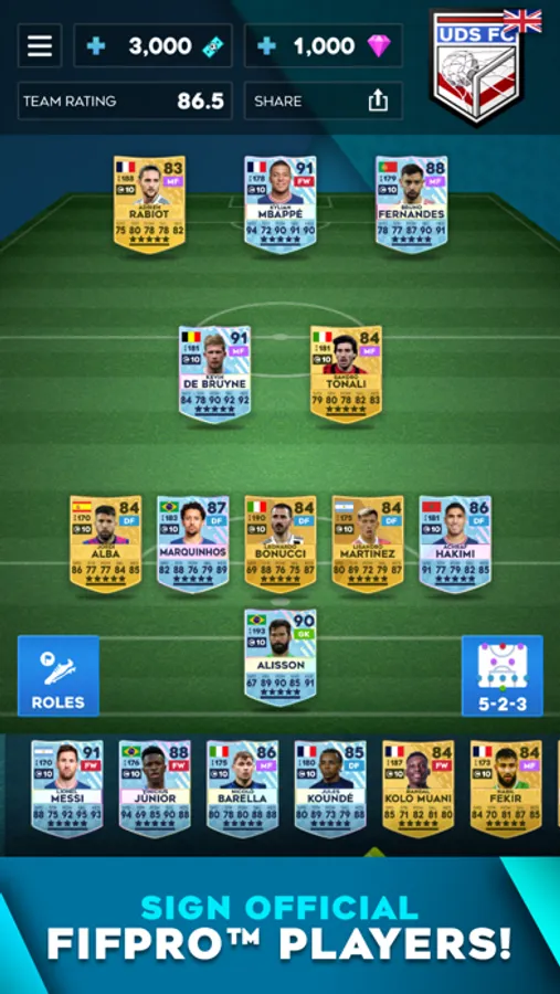 • Choose your formation and key roles. Then play!