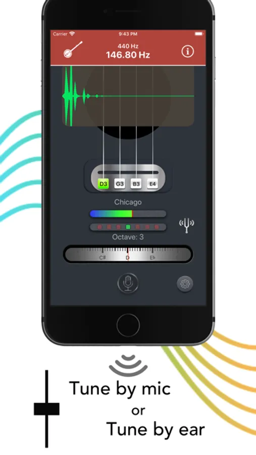 Tune all your string instruments with the integrated pitch detection engine and get immediate feedback about frequency, note and octave.