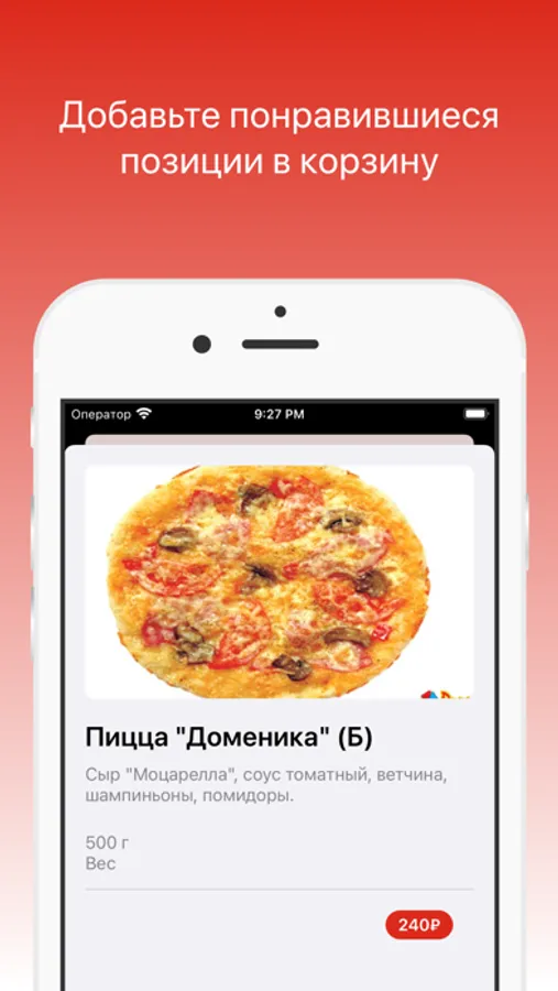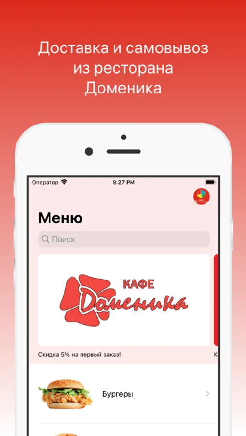 Как сделать заказ в приложении “Кафе Доменика”: выберите понравившиеся позиции из меню, добавьте их в корзину и перейдите на экран оформления заказа (по нажатию на иконку корзины).