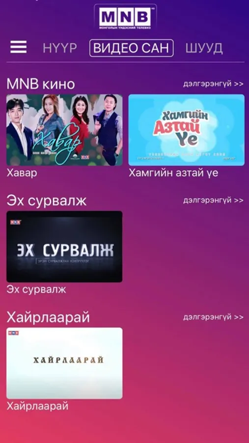 Using this app, you can watch MNB TVs, listen to MNB Radios and watch video contents created by MNB.