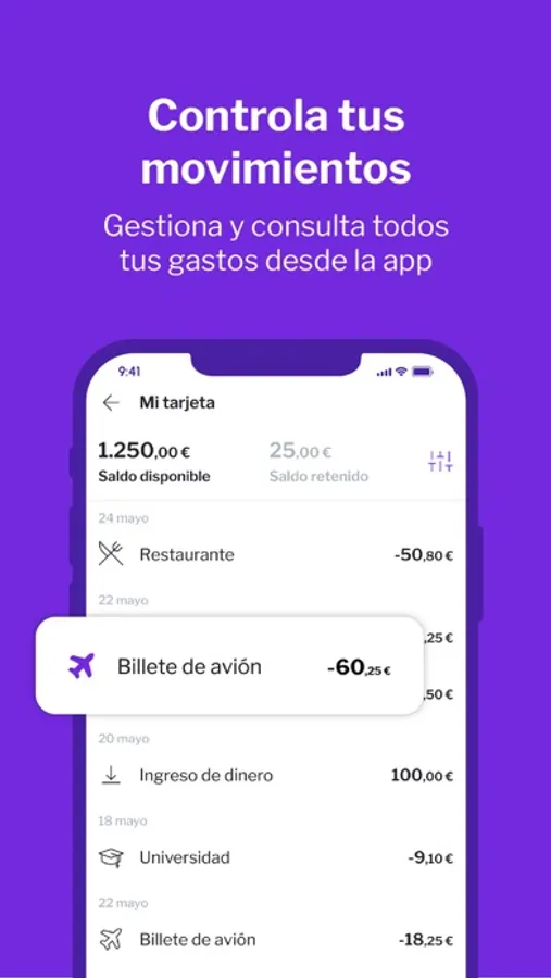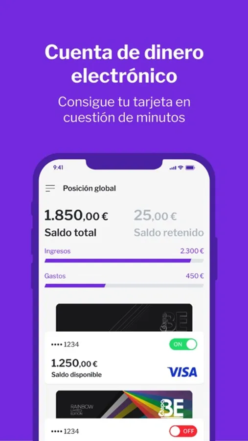 Desde la app, podrás enviar de manera sencilla e intuitiva dinero a otras cuentas y tarjetas. Además, siempre que lo necesites podrás recargar en cuestión de segundos tu cuenta Be Yourself Cards.
