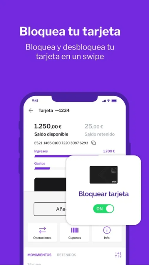 Tu controlas tu tarjeta. Puedes activarla cuando la necesites y desactivarla siempre que quieras.