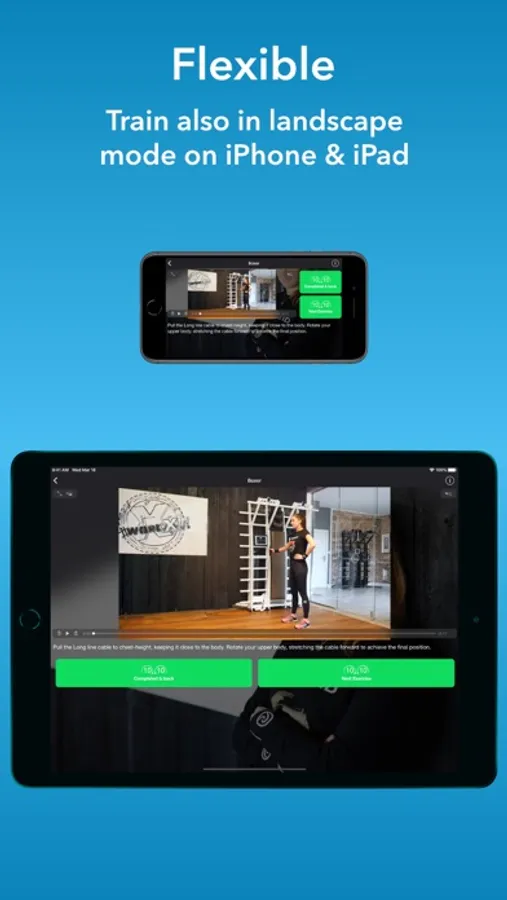 With this app you can train in one of our WorkXstations or at home. The next training session can also be booked in any WorkXstation.