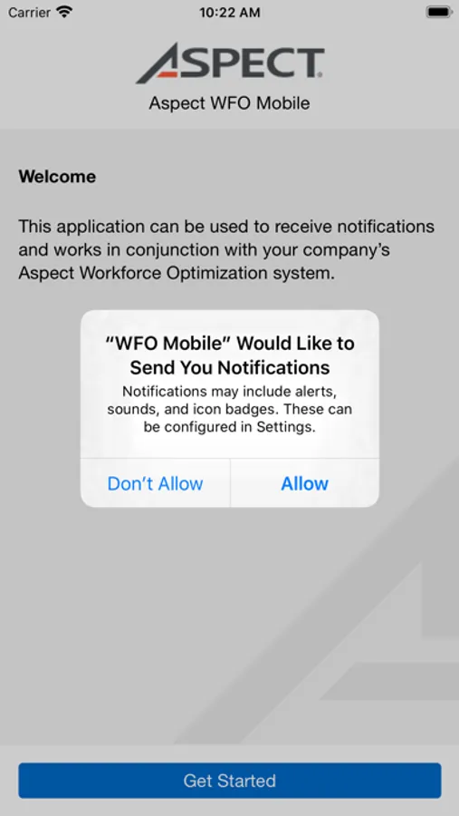 This application can be used to receive notifications and works in conjunction with your company’s Aspect Workforce Optimization system.