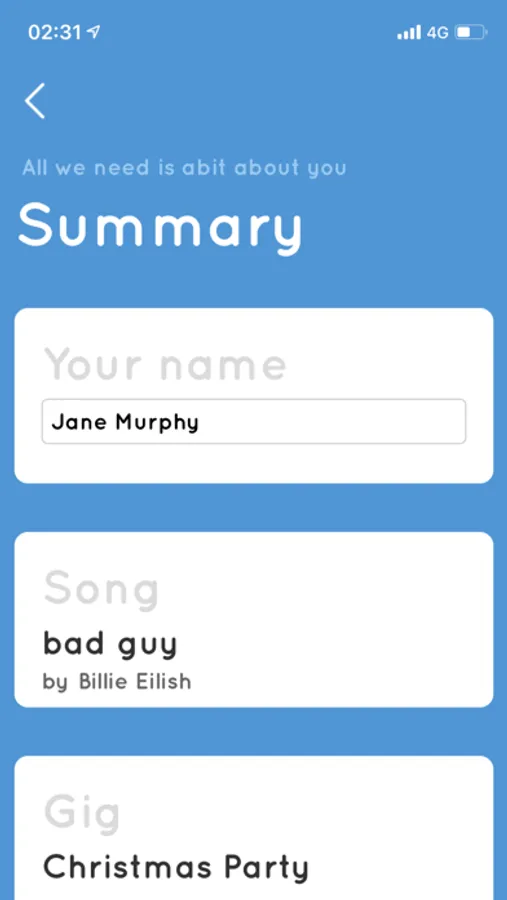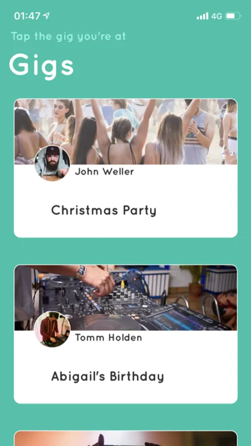 - Select gig from list of nearest (Normally there will only be 1 result due to radius limit)