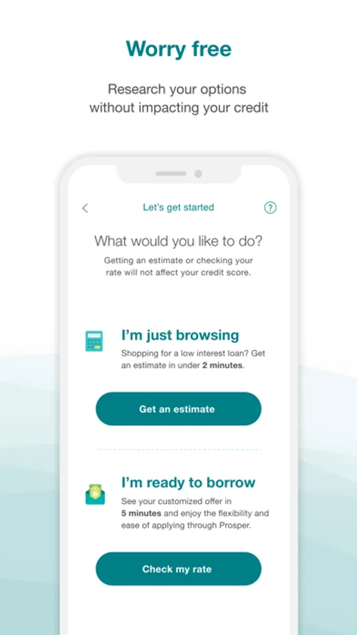 New to Prosper? Take two minutes to estimate your personal loan amount, interest rates, and monthly payments all without sharing your phone # or email. Like what you see? Submit your application in less than 5 minutes through the Prosper: Personal Loans App, and get ready for next-day funding(in as little as one business day if you meet required conditions). Access fixed rate, low interest personal loans from $2,000 to $50,000.