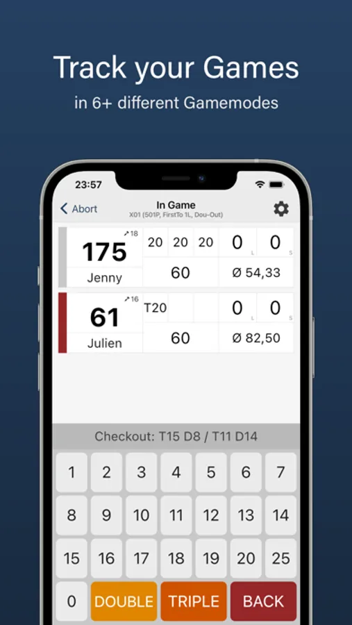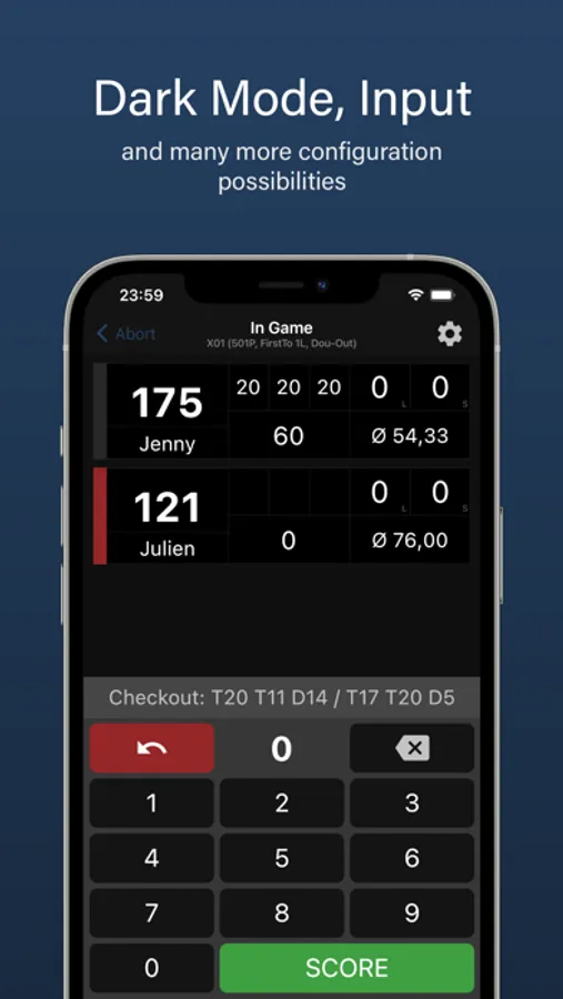 You can also customize the scoreboard, for example, you can choose the input method between "Whole round" and "Each dart individually".
