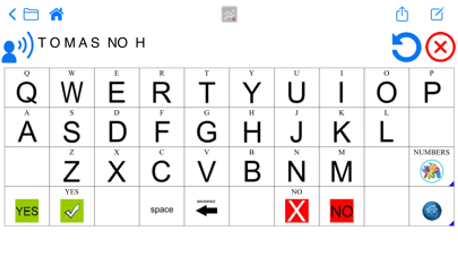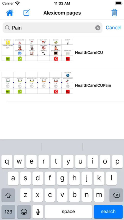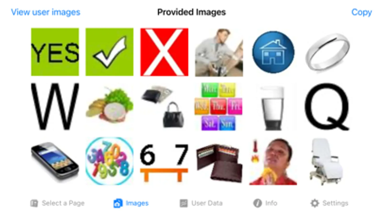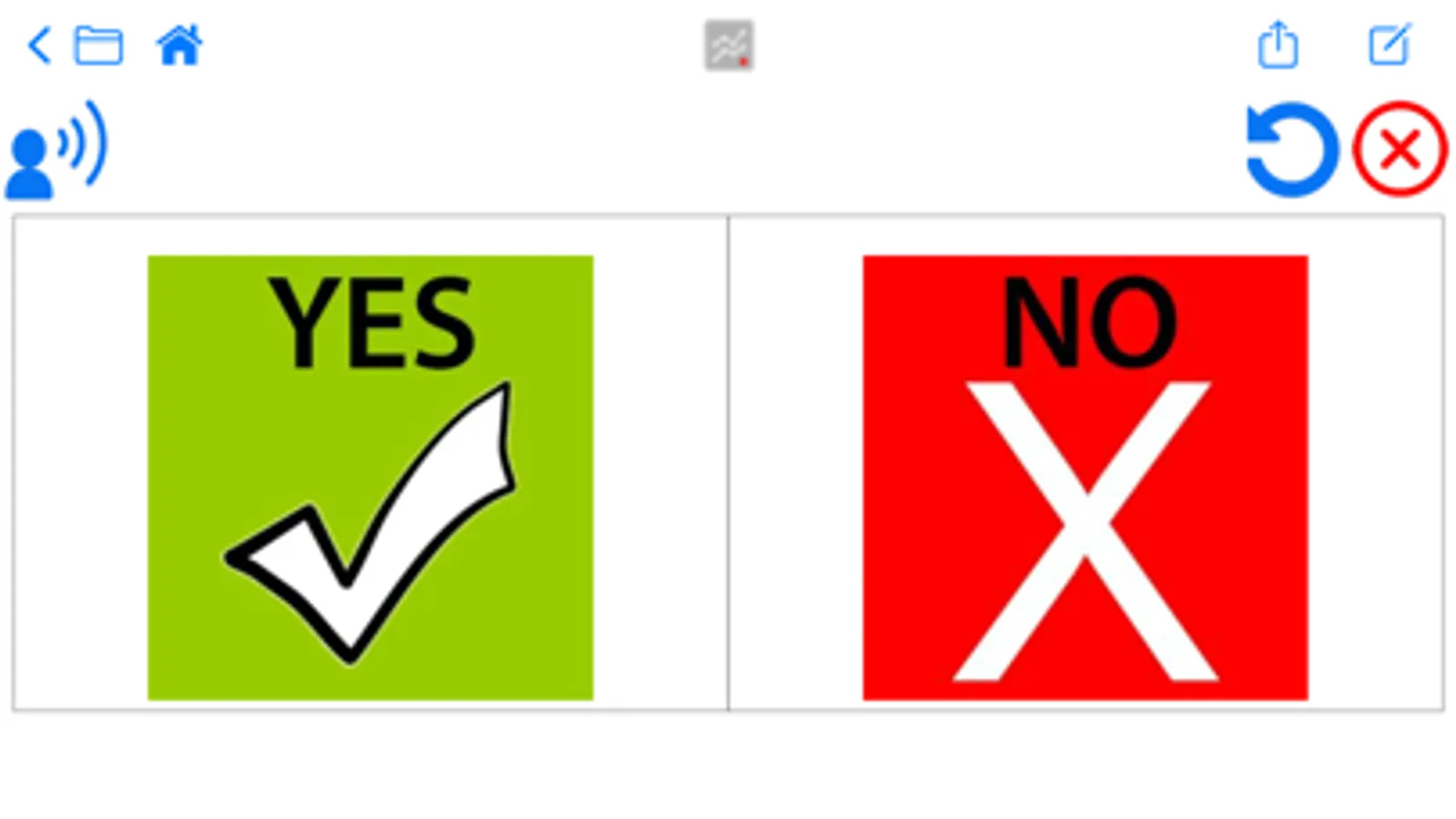 A collection of linked augmentative communication pages for a literate, fluent AAC user in a hospital intensive care unit.