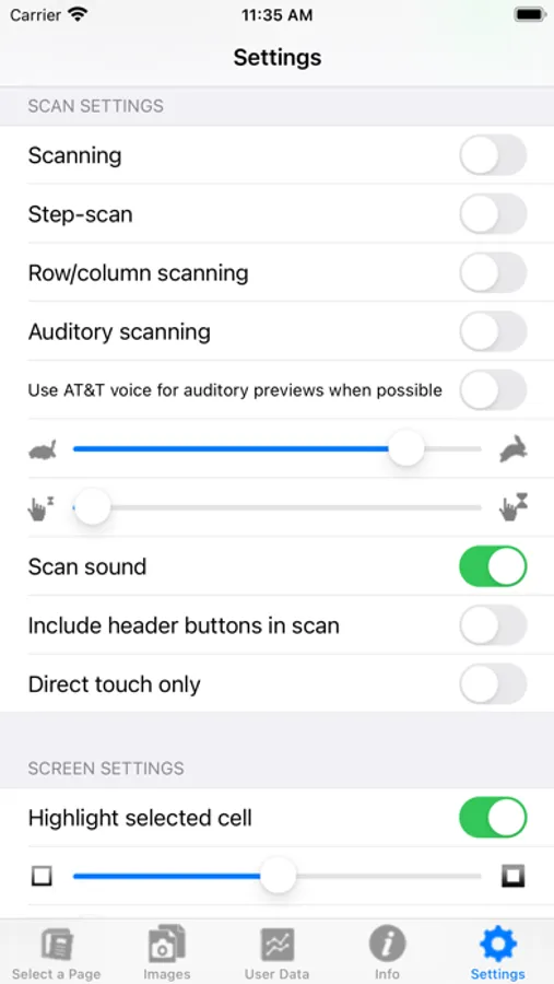 • Configure different TTS voice output settings for the user's voice and the auditory preview voice (when in scanning mode)
