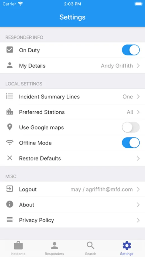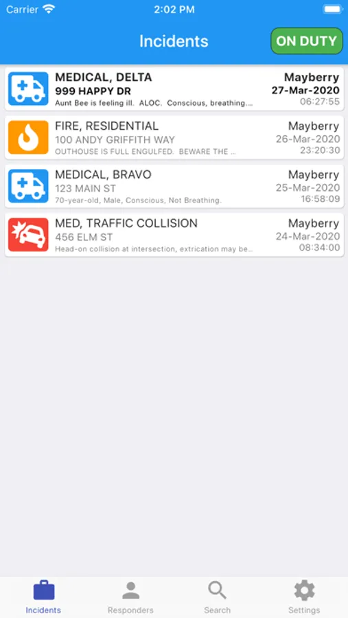 The target audience for Incident Responder are first responders who are part of a municipal agency such as a volunteer fire department or ambulance. It requires that the agency is already set up with a CAD (computer-aided dispatch) system. In order to use the app, the agency needs to have their CAD pages forwarded to an email address assigned for use by Incident Responder. Contact the developer to set this up, or to get information on how to log in with credentials for a test account in order to explore app functionality.