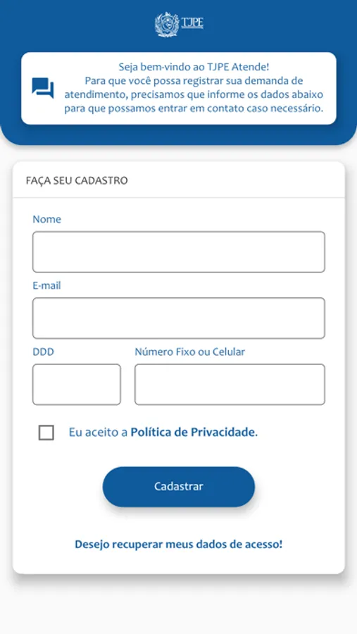 Aplicativo que permite ao cidadão registrar uma solicitação em qualquer unidade judiciária do Tribunal de Justiça de Pernambuco, e acompanhar as respostas da sua solicitação diretamente em seu dispositivo móvel, de forma on-line, por meio de notificações.