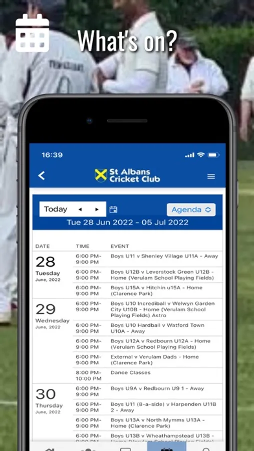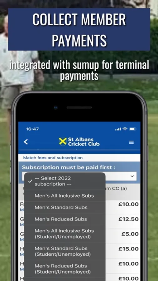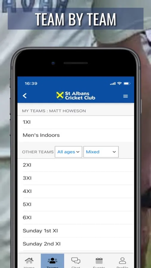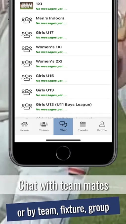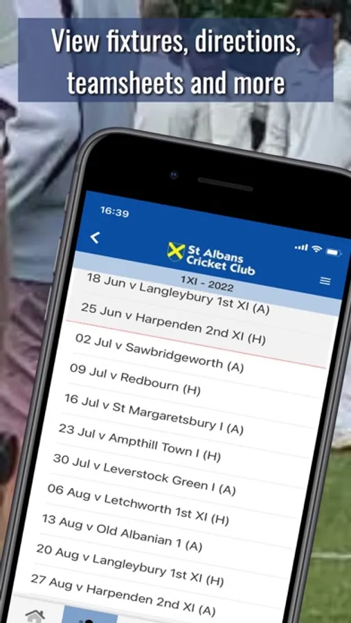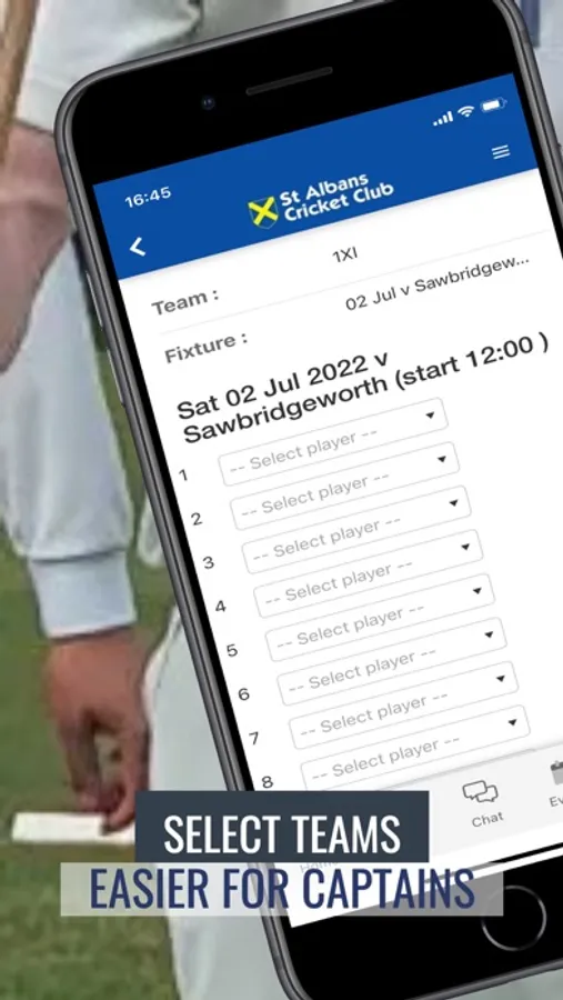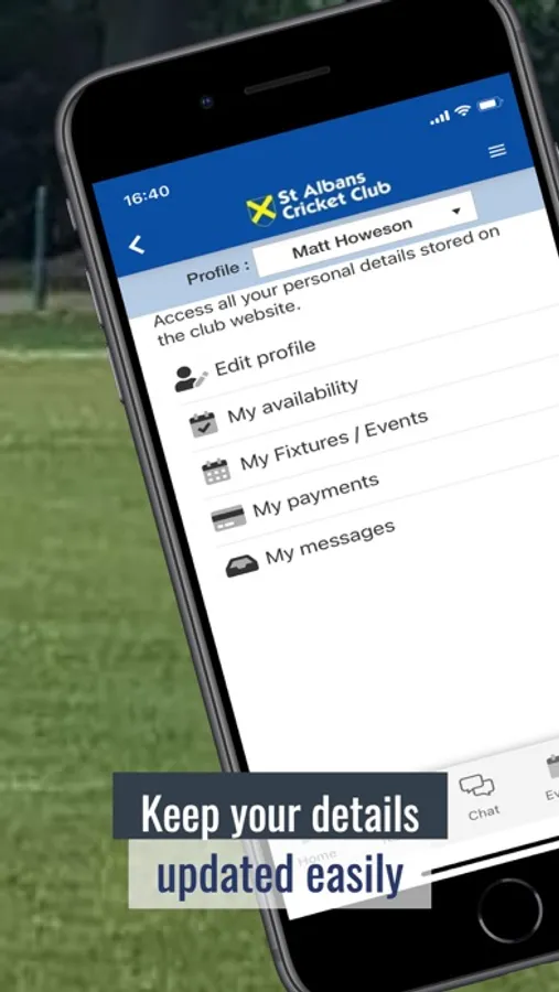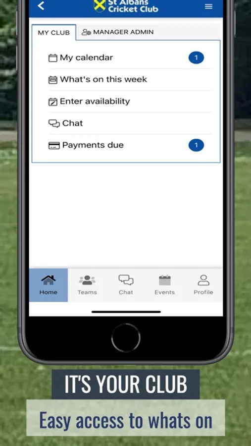 The mobile app enables club members to enter match day availability, view fixtures, register for events, and provides a club chat service.