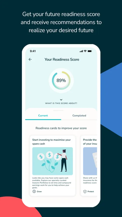• Future Readiness Score: With just a quick assessment, you can get a clear picture of your current financial readiness and future fund projections