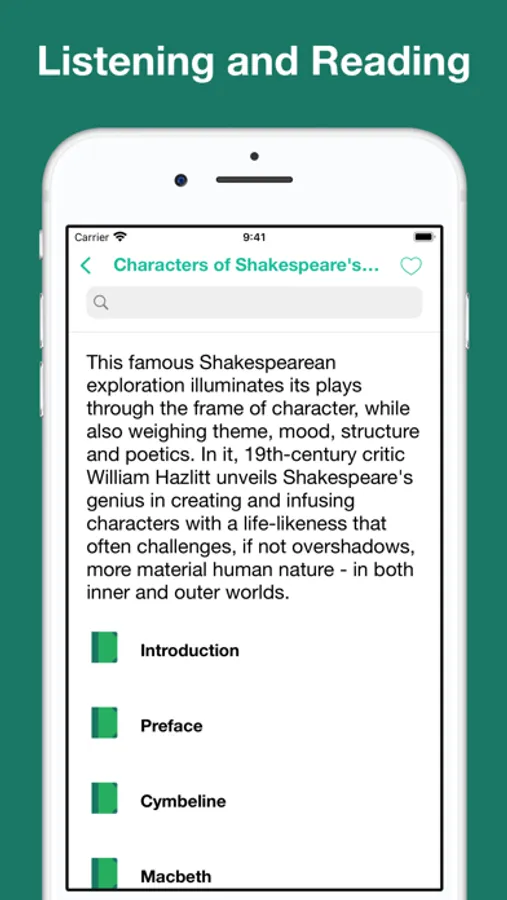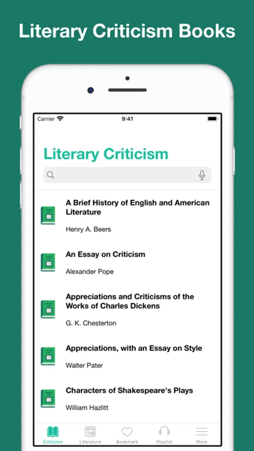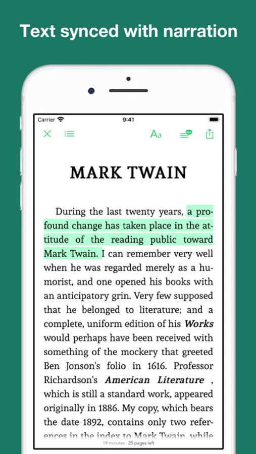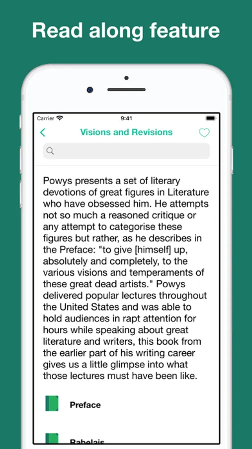 This app provides literary criticism books with human narration. It includes read along feature: professional recorded narration plays along while you read.