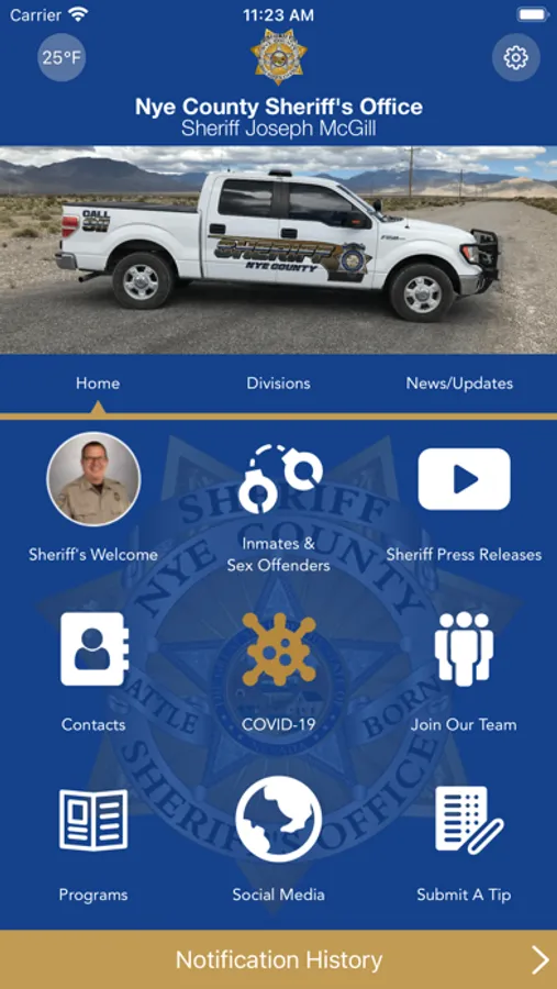 The Nye County Sheriff’s Office mobile application is an interactive app developed to help improve communication with area residents. The Nye County Sheriff’s Office App allows residents to connect with the Nye County Sheriff’s Office by reporting crimes, submitting tips, and other interactive features, as well as providing the community the latest public safety news and information.