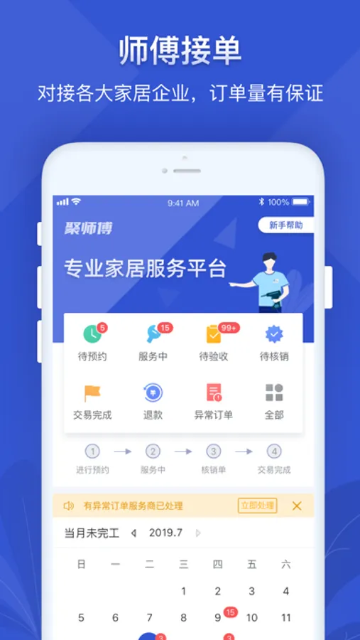聚师傅作为专业从事家居服务的行业O2O平台,致力于提供家居配送、安装、维修、保养等一站式服务,解决家居售后环节成本高、服务质量差、管理难度大等棘手问题。