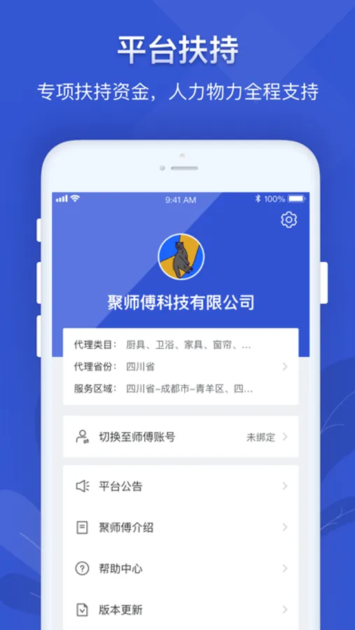 聚师傅创始团队前身已拥有多年家居配送、安装服务相关经验,已和数千名安装师傅达成合作关系,服务范围覆盖国内多座城市。聚师傅平台深度结合微信连接能力,实现线上下单、抢单、支付、资金托管、评价等功能,极大程度提升效率的同时也推进了行业标准、诚信机制的建立。