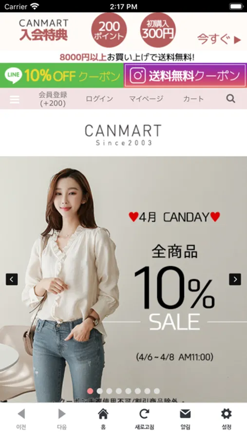 モバイルショッピングやイベント確認、新商品、人気BEST商品など、