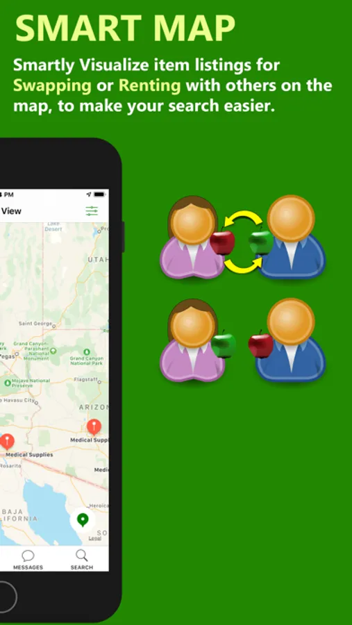 *Map View: Visualize item listings for Swapping or Renting with others on the map, to make your search easier.