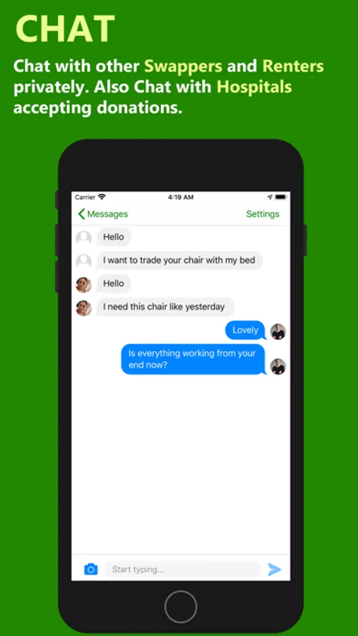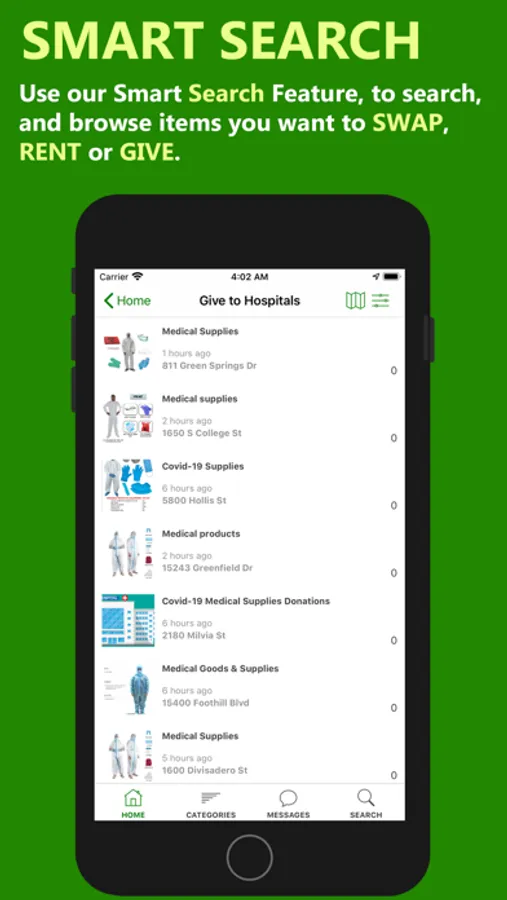 *Saved Places: Save the hospitals you want to donate to, and the item listings you like to Swap or Rent with others, so you can come back to them later.
