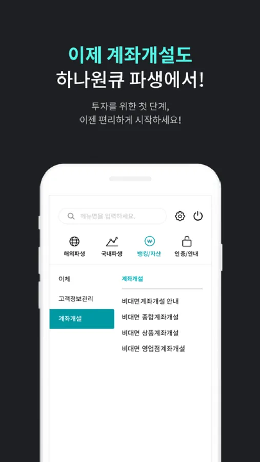 ◆ 주요특징 : 선명한 UI를 통한 접근성 강화 / 멀티분석 차트 제공 / 강화된 관심종목 / 다양한 옵션 및 모션가이드 제공 / 여러가지 정보를 홈화면을 통해 한눈에 / 손님이 직접 최적화된 메뉴를 구성할 수 있는 기능 제공 (홈화면설정, 전체메뉴 이동 방식, 퀵메뉴설정)
