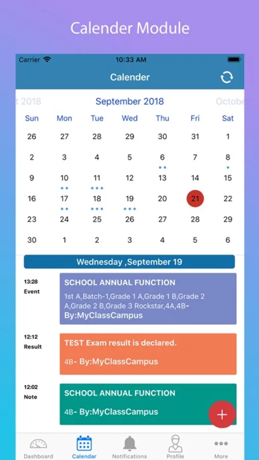 A Pool between Student, Parent, Teacher & Admin :Online tests, spot results, Calendar, Live notice board, discussion and many more..