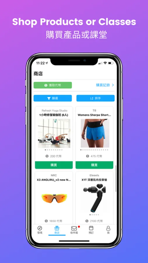 6. Shop - Users can purchase sports products and classes