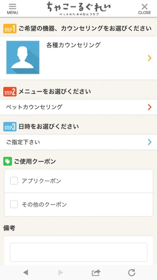 診療内容・ご希望の日時を指定して送信するだけで予約を依頼できます。