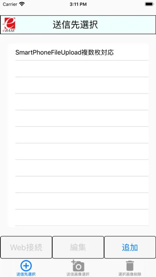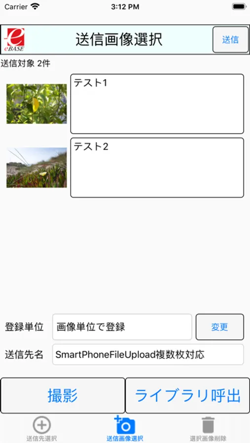 撮影後、登録したサーバーを選択し、「送信」ボタンをタップすれば、写真が eBASEweb に送信されます。