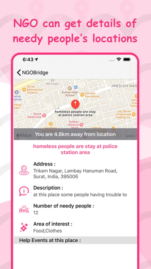 NGOBridge app acts as a bridge for NGOs and social activists across the world. It provides information about several needy people's locations so that NGOs can contact the needy people. It helps NGOs manage and track their activities in an efficient way.