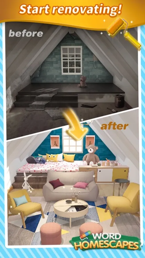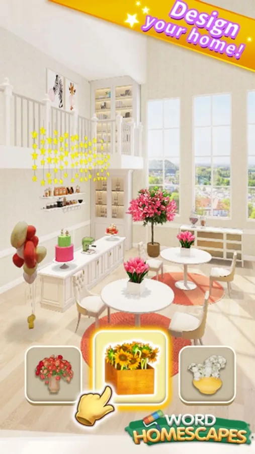 Welcome to the game! It is not only a word puzzle game, but also a design home game.