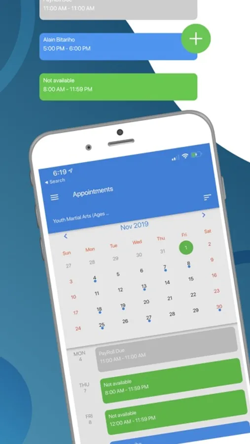 Manage your appointment schedule right from your device. Schedule appointments for your clients. You can also reschedule, cancel or mark them as a no-show if needed.