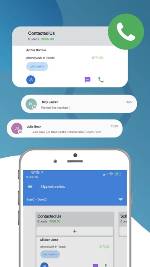 Get notifications of new messages right on your device. Communicate through SMS or email to contacts.