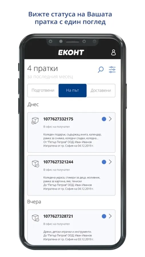 Знаем, че времето ви е ценно. С приложение Еконт получавате информация за пратките ви мигновено. Удобно проследявате пътя им, получавате известия за техния статус и виждате услугите, които сте избрали за тях.