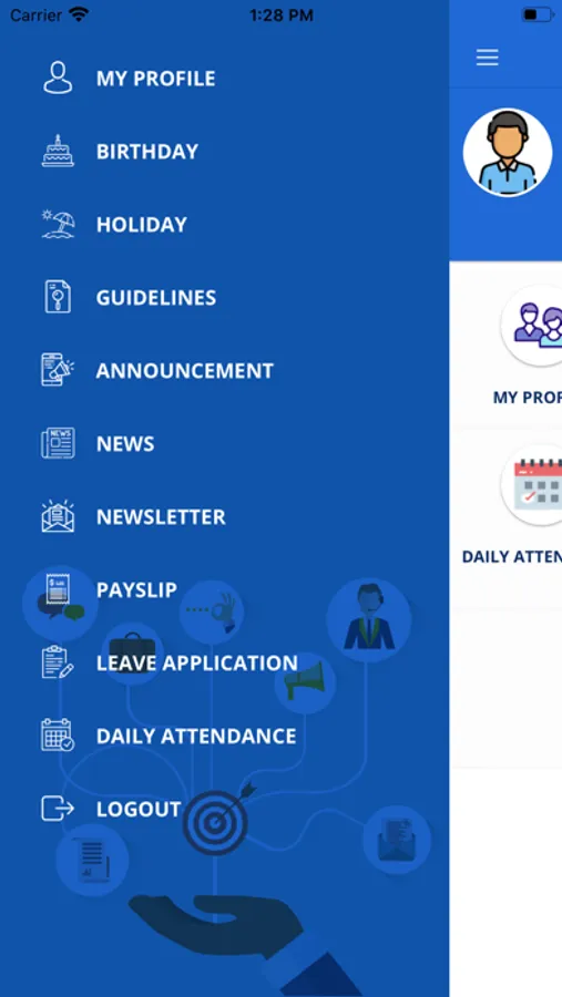 This is an employee self service module on mobile. It will help you to watch your profile information feeded in HRM software, keep you updated with latest news and notifications, will display you policies of company, birthday list of your colleagues, holidays list etc. You can view your monthly payslip. Attendance can be punch with location tracking. Leaves also can be applied from this app.