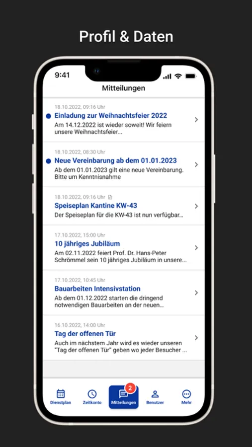 Über das Mitteilungssystem in TIMEOFFICE mobile können Eure Vorgesetzte Euch direkt erreichen. Wenn es Informationen gibt, die für Euch relevant sind, erhaltet Ihr sie auf diesem Weg sofort und ohne Umwege.