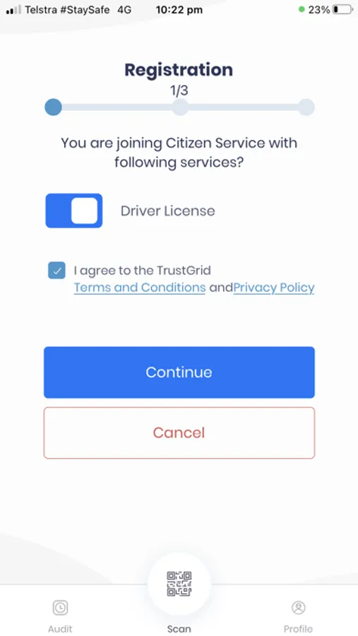 This application can only be used with TrustGrid Citizen application to verify digital encrypted credentials issued by TrustGrid platform.
