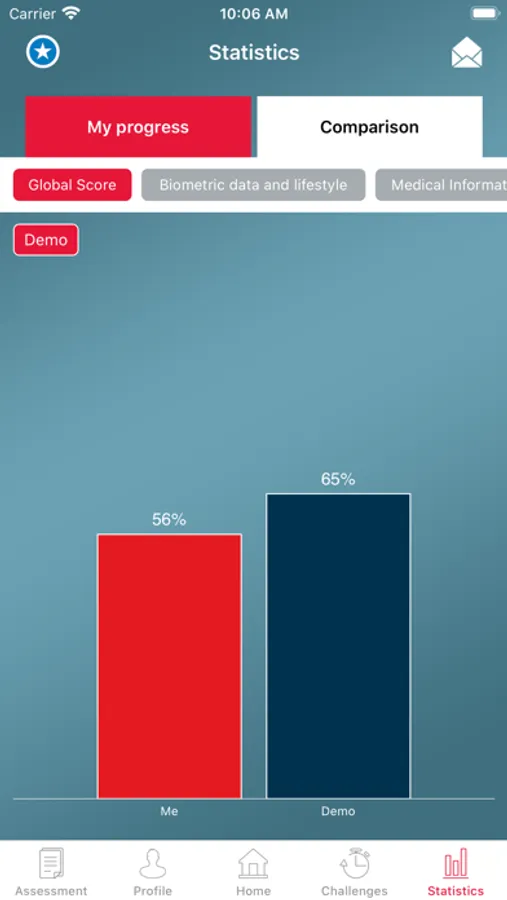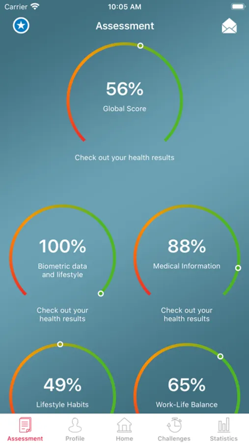 My Health Portal App gives you access to a health assessment which takes a few minutes to fill, and then provides you with recommendations and opportunities to make positive changes to your lifestyle. Take action by joining simple and fun challenges, by yourself or with your coworkers.