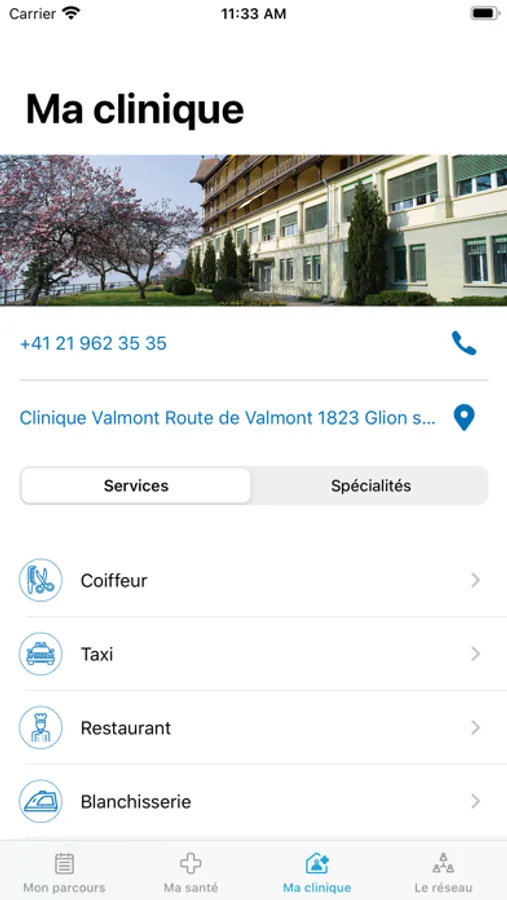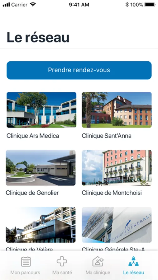 Suivez votre parcours santé à la Clinique Valmont: rendez-vous, exercices prescrits par votre thérapeute et suivi de votre activité physique grâce à l'intégration avec la health app. Accédez également à toutes les informations sur les médecins et services du réseau de santé Swiss Medical Network.