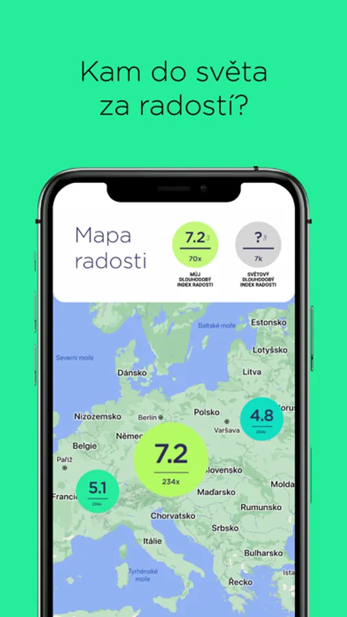 • You can see your joy index on the world map of joy. You will also see how happy people are anywhere in the world.