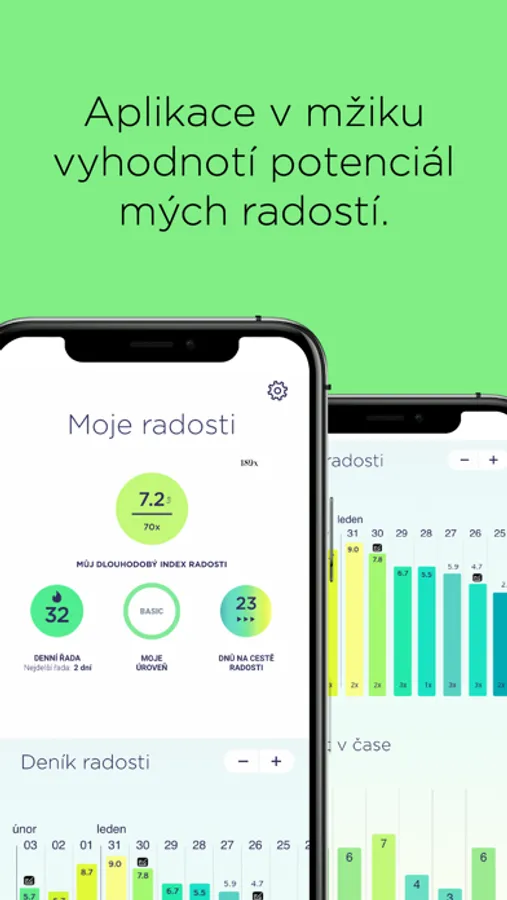 Ideally, take a moment each day to record your current state of joy with just one click. The history of records will show you your strongest and weakest moments in time and space. This great app has the potential to bring you sincere lasting joy. It is simple and therefore effective. Try 7 days for free now.