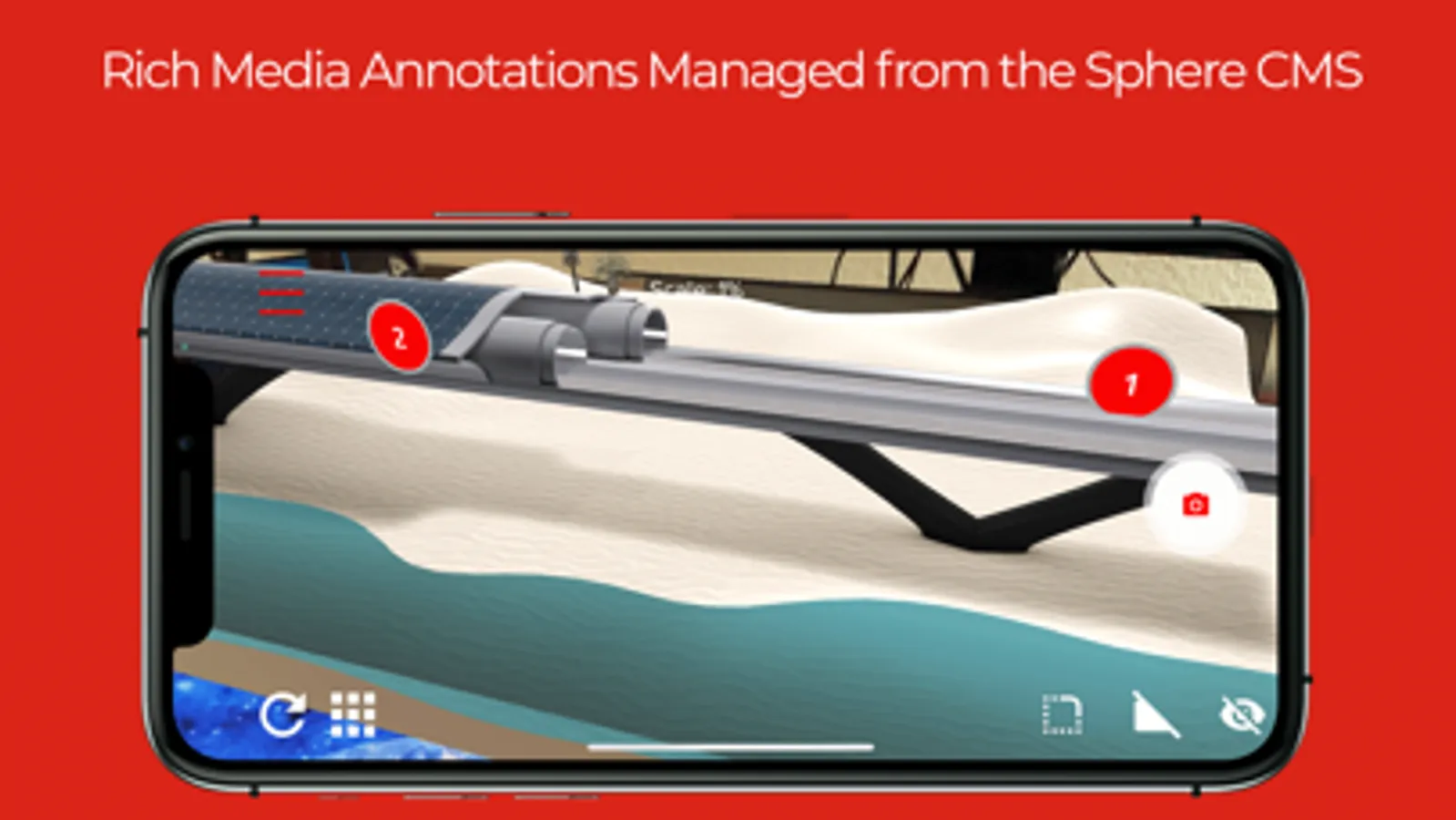 Explain products anywhere in Augmented Reality easier to your customers. Your Sales Force can present products locally at the customer or Customer Service teams can get access to a fully interactive 3D product catalogue connected to crucial business information, such as pricing for spare parts or IOT sensor data for maintenance information.