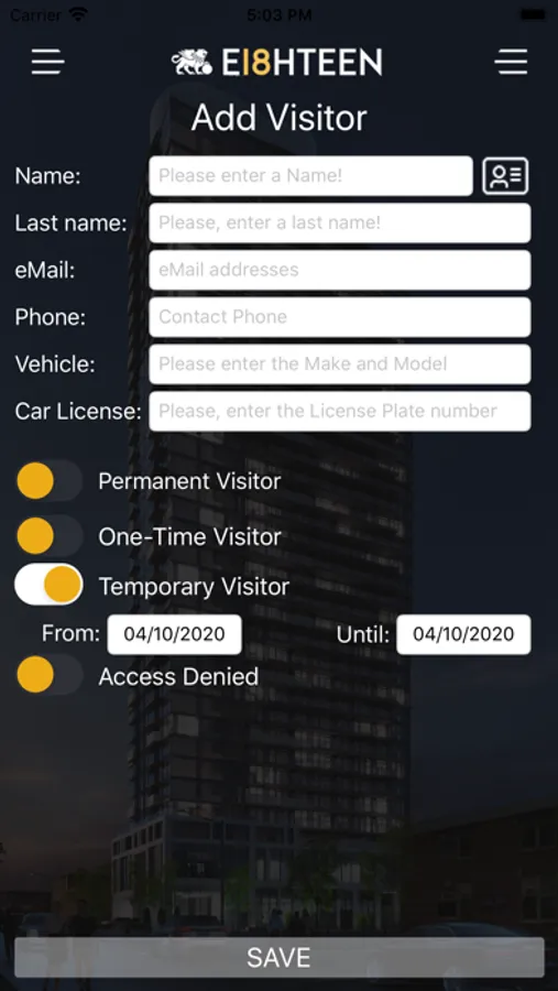 18 Erskine is your private gate to your very own residence, wherever you might be. Access your Facilities Reservations, Concierge, Front Desk and Repair Requests, control Visitors Access, view and accept Deliveries, keep in touch thru our Internal Messaging System, all thru your iPhone or iPad, no matter where you are. Since 18 Erskine uses GPS Localization running on the background in order to improve the accuracy of some of its features, the continued use of GPS running in the background can dramatically decrease battery life.