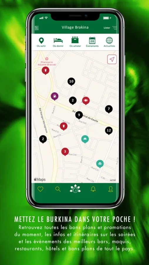 Retrouvez toutes les infos et itinéraires sur les meilleurs bars, maquis, restaurants, hôtels et événements du Burkina Faso. Les meilleurs endroits de loisir dans votre portable. Commandez, reservez, faites-vous livrer et restez au courant des dernieres nouvelles de vos points de vente préferés.