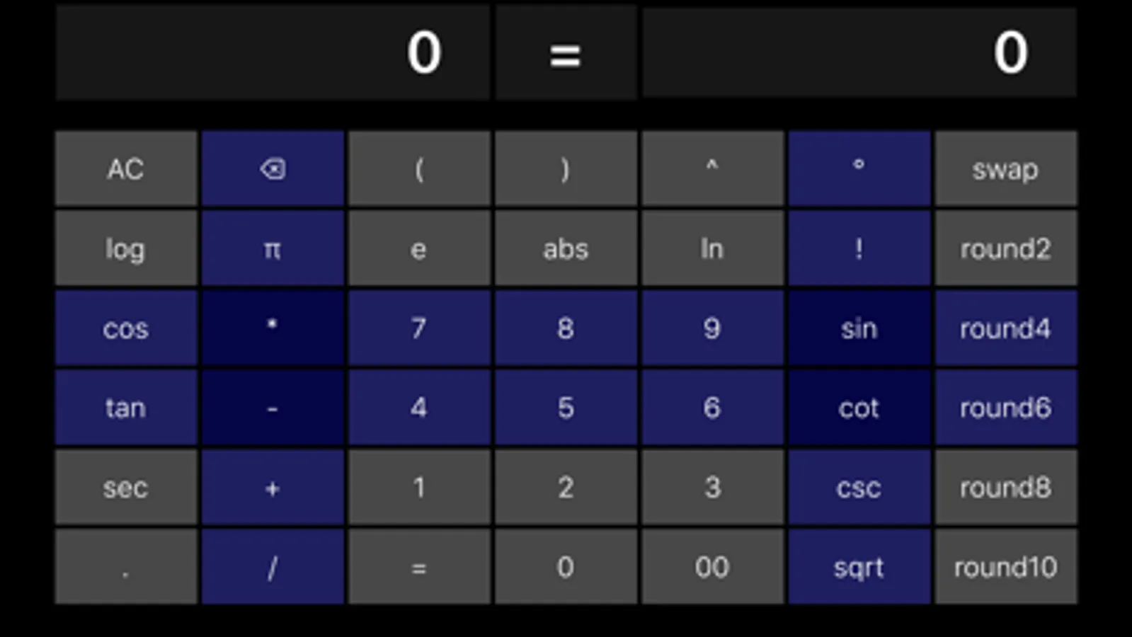 My App can perform all kind of functions in landscape mode and can do all basic operations in portrait mode. It is capable of performing multiple operations at single time and the typed equation as well as result are shown side by side.